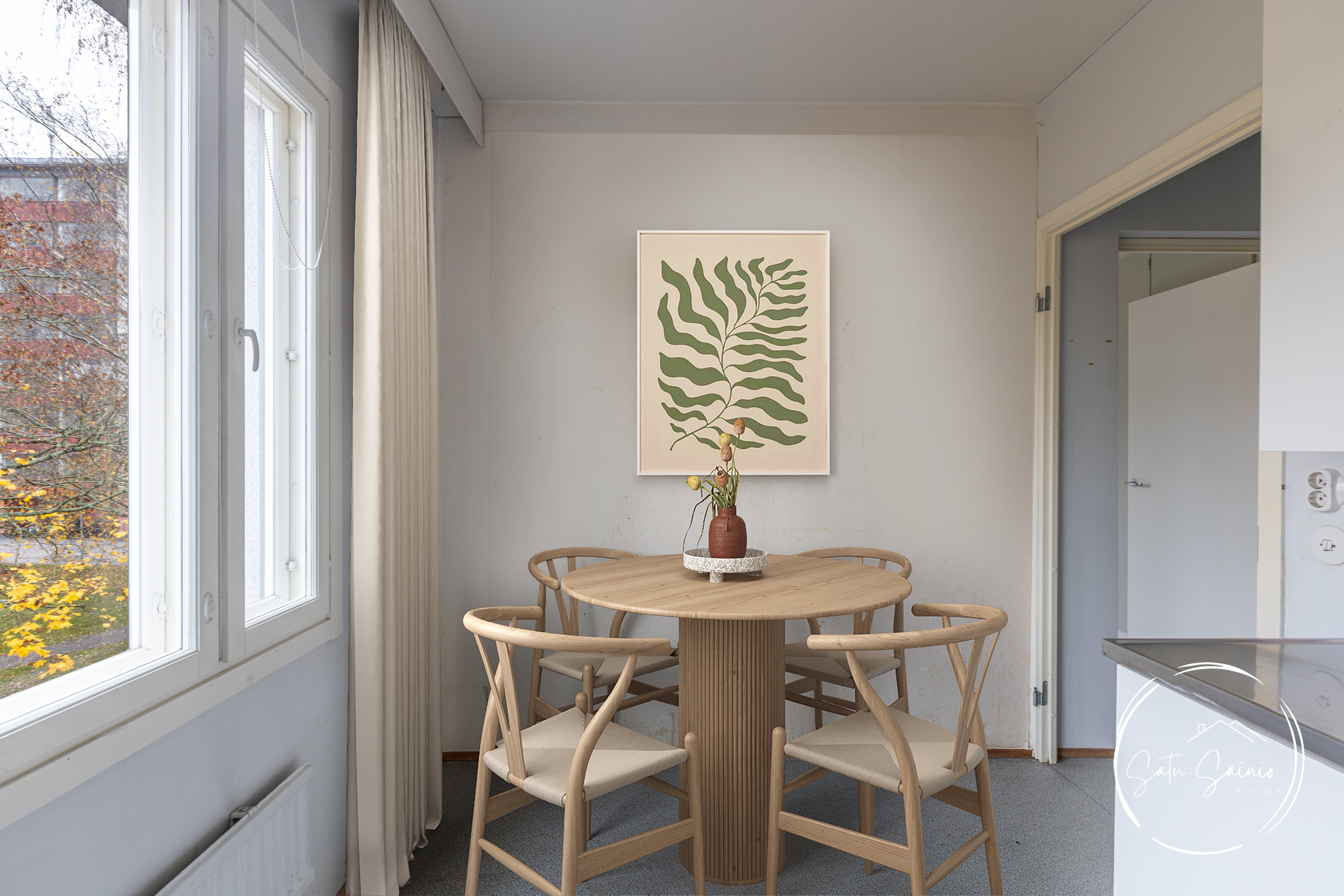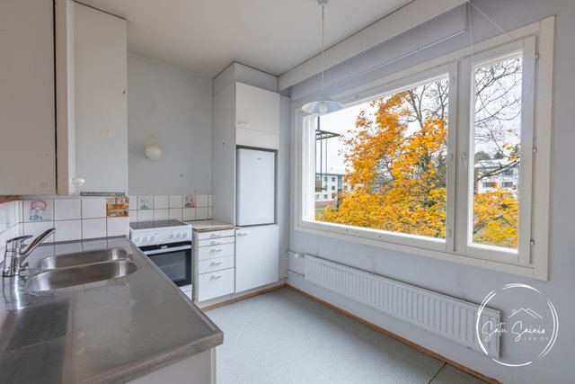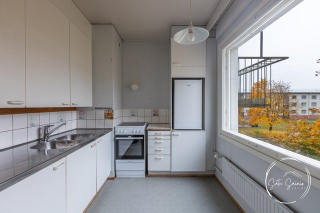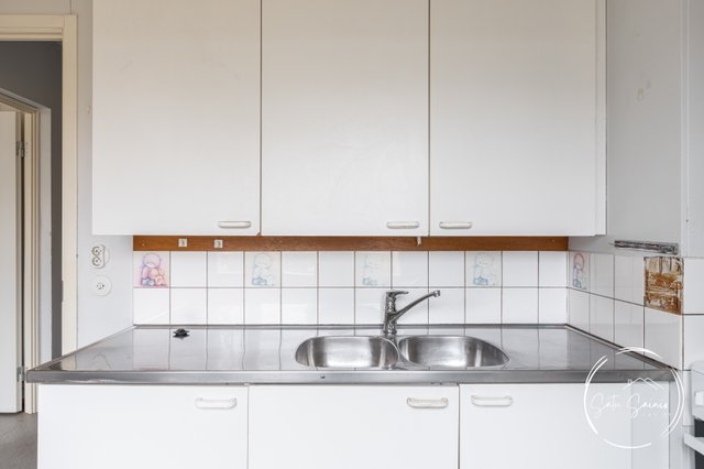 - Asunto kaipaa päivitystä nykyhetkeen keittiön, pintojen, kaapistojen ja väliovien osalta.