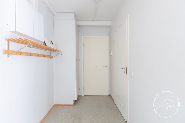 - Eteisessä kaapisto ja naulakko. Lattia muovimattoa, seinät maalattu.