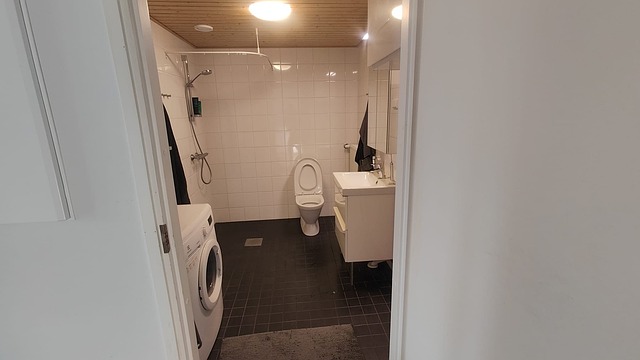 - WC-istuin, pesukoneliitäntä, peilikaappi, ja suihku