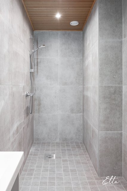- Asunnossa on jokaisessa kerroksessa wc. Yläkerran wc:n yhteydessä on myös suihku, käsienpesuallas ja allaskaappi, peili, Tilat laatoitettu. Keskikerroksen wc:n lattia laattaa ja seinät maalattu. Käsienpesuallas ja allaskaappi ja peili. Kellarikerroksen wc:n lattia laattaa ja seinät kaakelia. Käsienpesuallas ja allaskaappi ja peili.