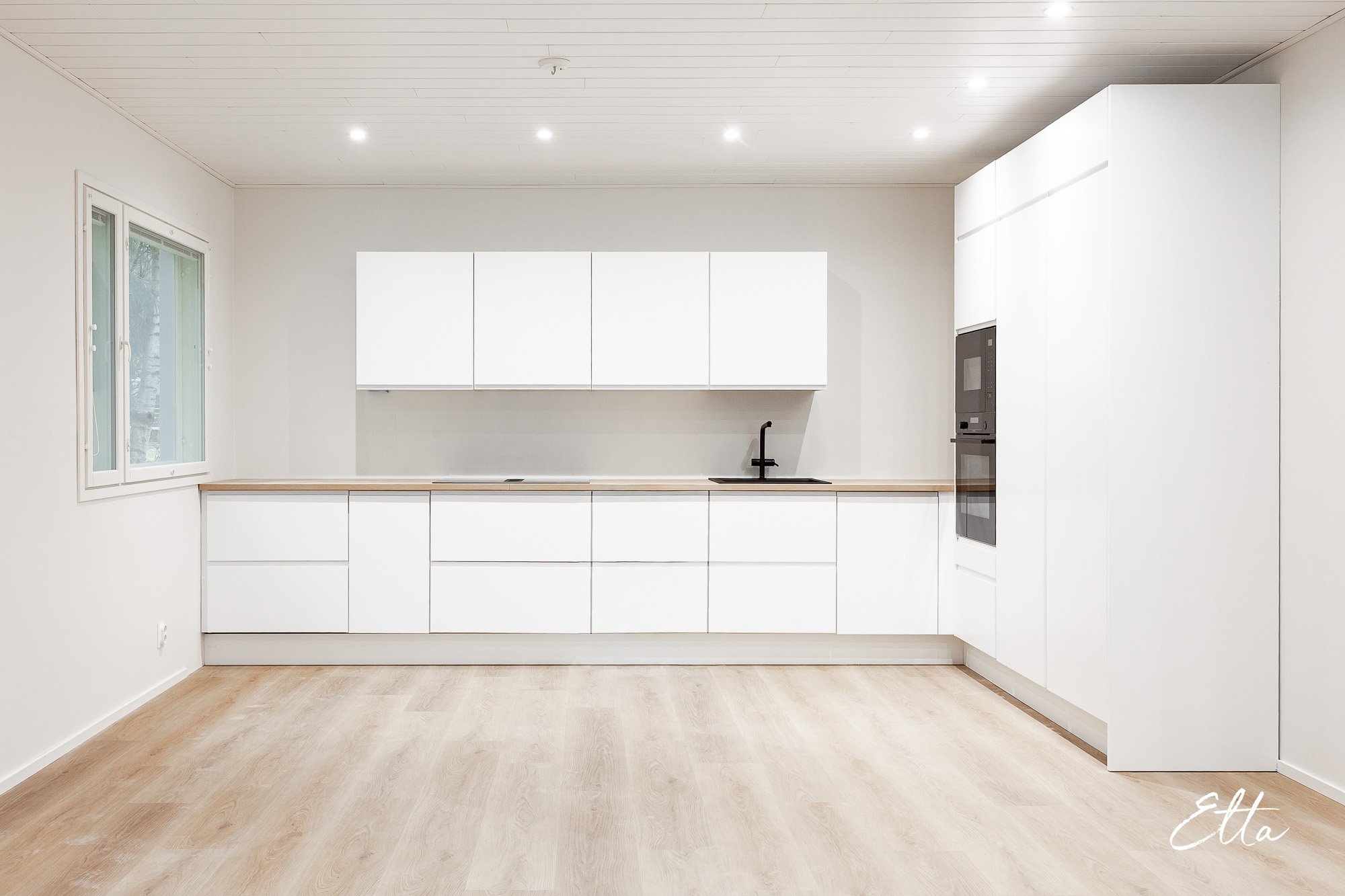 Asunnon avarat ja valoisat tilat luovat viihtyisän ilmapiirin. Olohuoneesta avautuvat pariovet johtavat terassille, josta avautuu kaunis näkymä metsäiselle takapihalle – täydellinen paikka rentoutua ja nauttia luonnon rauhasta. Keittiö on varustettu nykyaikaisesti ja sen käytännöllisyys ilahduttaa niin arjen kiireissä kuin viikonlopun kokkailuhetkissä.