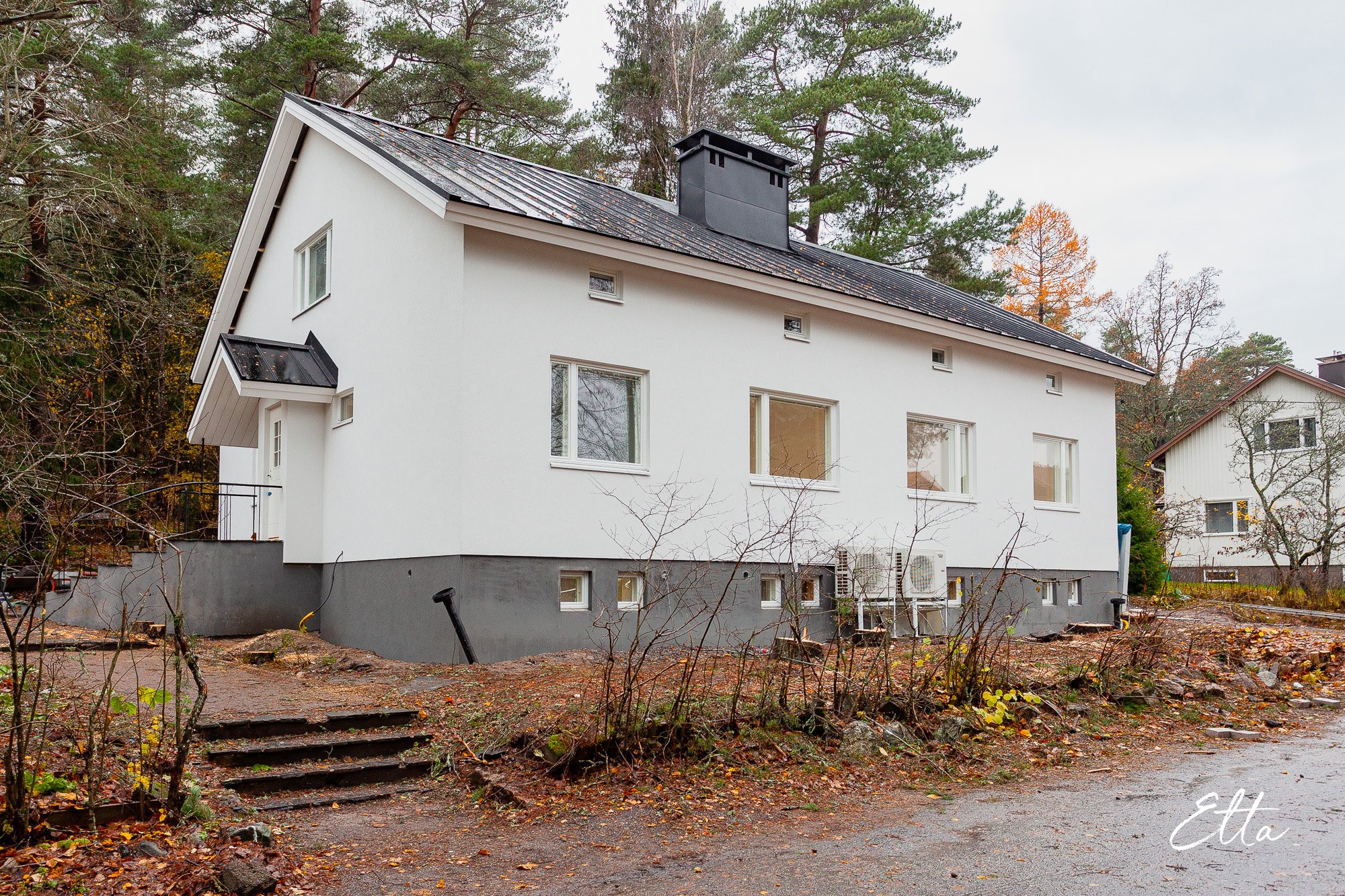Uusittu katto, julkisivu, LVIS, lämmönlähde, uudet ovet ja ikkunat, terassit, sisältä uusittu kaikki.