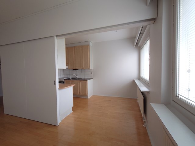 Uudistuneessa "vanhassa uimahallin talossa" edullinen kaksio toisesta kerroksesta.
