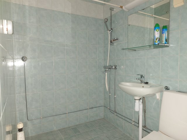 - WC-istuin, suihku, pesuallas, lattialämmitys, pesukoneliitäntä, peili, ja bidee-suihku