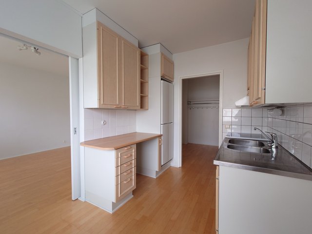 Valoisa asunto, lasitettu parveke, vaatehuone. Taloyhtiössä iso lämmin varasto polkupyörille!
