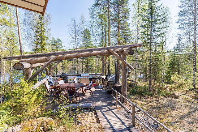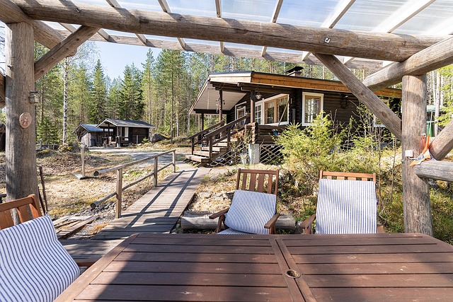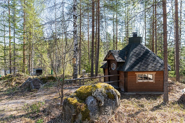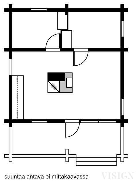 Erillinen vierasmökki, jossa vieraat yöpyvät omassa rauhassaan.