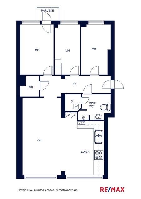 *Huoneistossa todella tehokas pohjaratkaisu (4h, avok, s/kph/wc, vh, p).