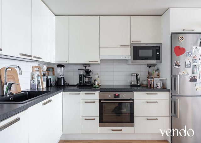 - Jääkaappipakastin, liesituuletin, astianpesukone, mikroaaltouuni, erillisuuni, ja liesi