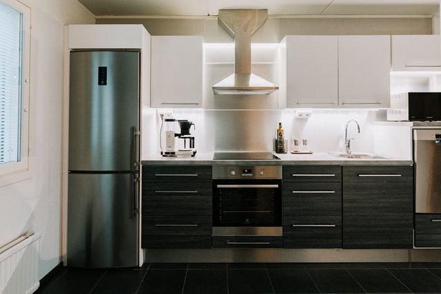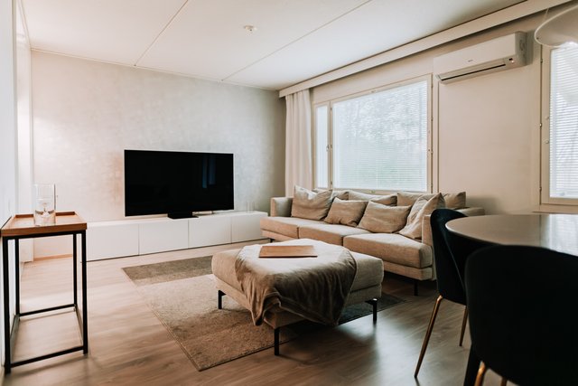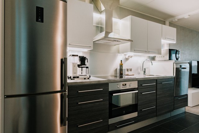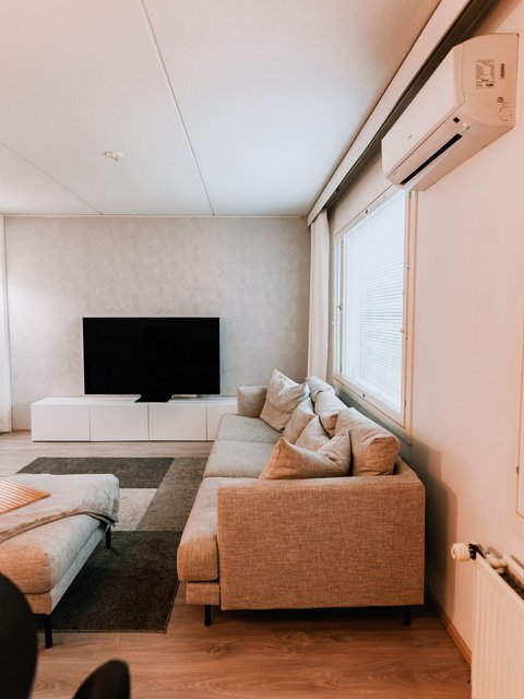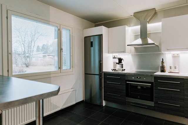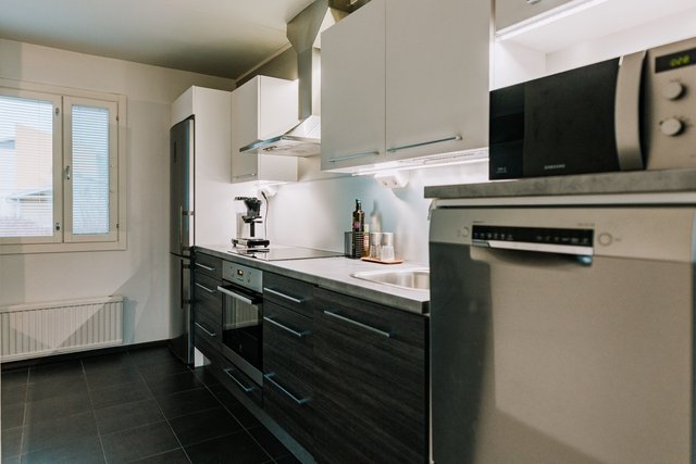 - Jääkaappipakastin, liesituuletin, astianpesukone (Uusittu syksy 2025), erillisuuni, ja liesi