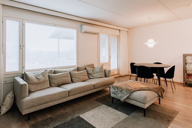 Kivasti remontoitu tilava rivitalo kolmio Saareksiinmäellä.