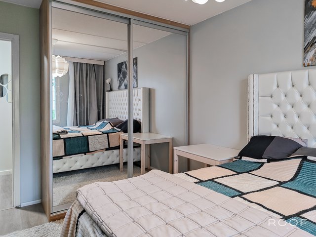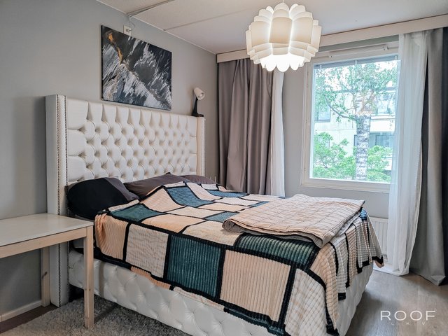 - Makuuhuoneessa on iso peililiukuovikaapisto, joka on uusittu 2023. Lattia vinyylilankkua ja seinät maalattu.