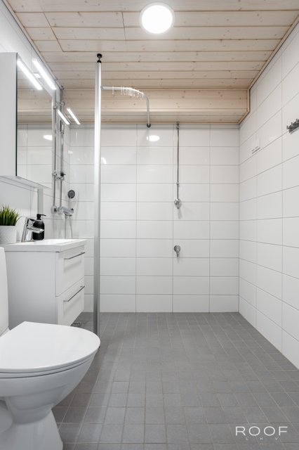 - Kylpyhuone on uusittu linjasaneerauksen yhteydessä vuonna 2020. Varustus suihku, suihkuseinä, peilikaappi, allaskaapisto, wc-istuin, kuivauspatteri, bidee-suihkupesukoneliitäntä. Tila on kokonaan laatoitettu.