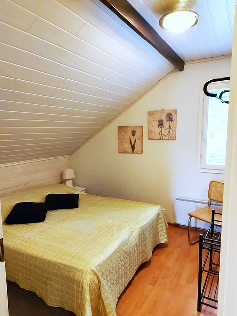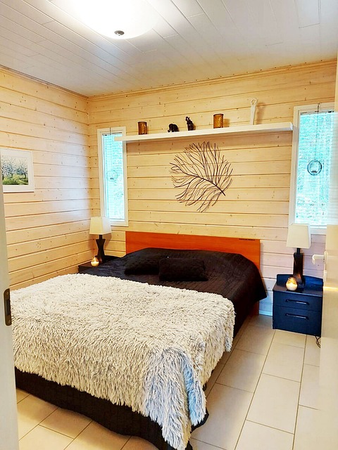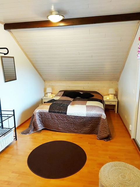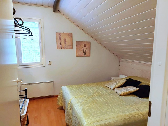 - Alakerran makuuhuoneen seinät paneeli, lattia laatta. Yläkerran makuuhuoneitten seinät paneeli/maalattu, lattiat laminaatti.