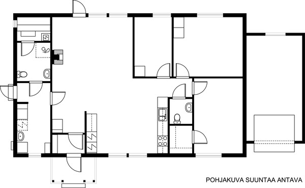 - Pesukoneliitäntä, lattiakaivo, pöytätaso, ja lattialämmitys
