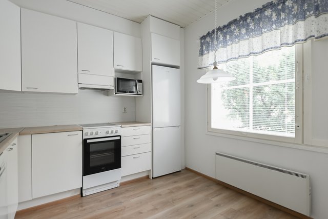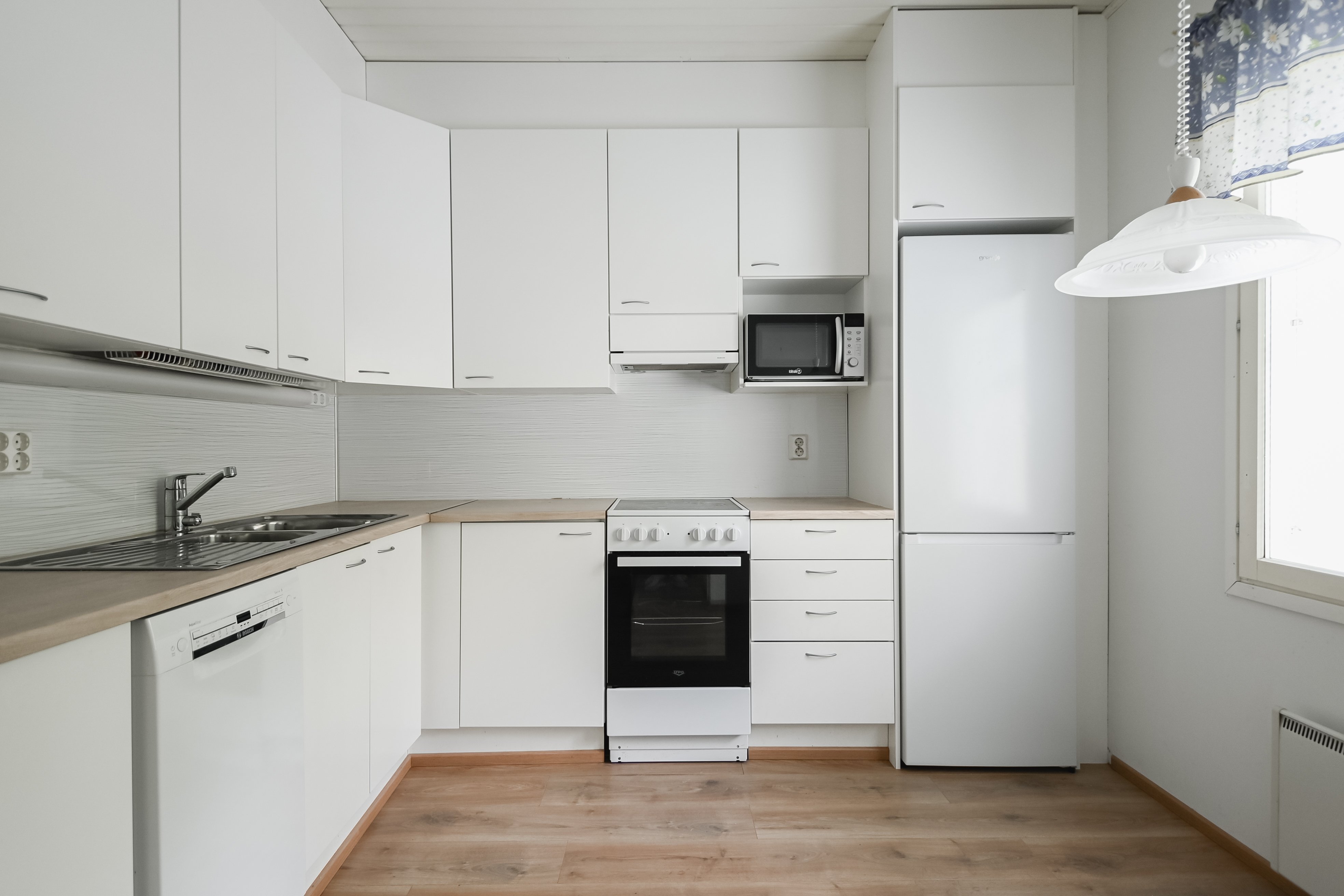 - Jääkaappipakastin, liesi, astianpesukone, ja liesituuletin