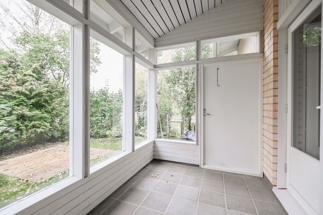 Asunnon lasitettu terassi avautuu suojaisalle pihalle, jossa on suojaa antavia istutuksia ja koira-aitaus. Huoneistolle kuuluu autokatospaikka ja vieraspysäköintipaikkojakin löytyy.
