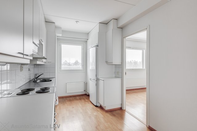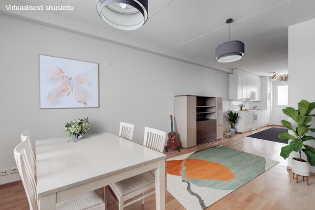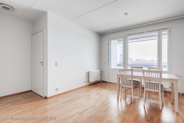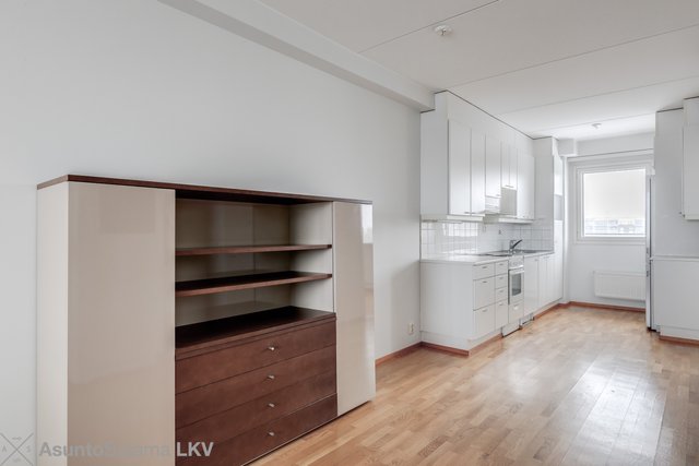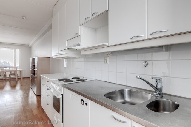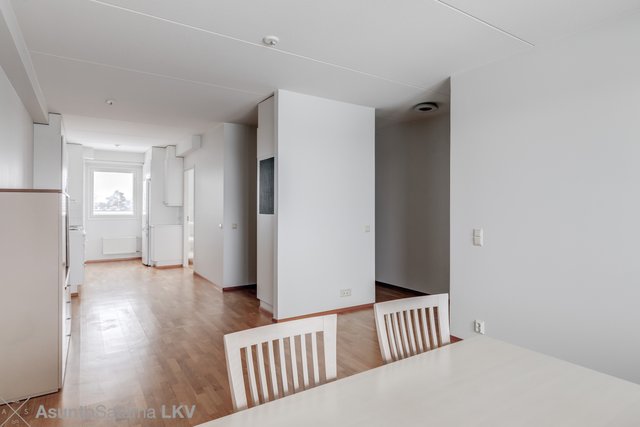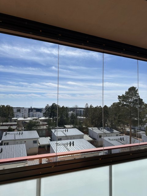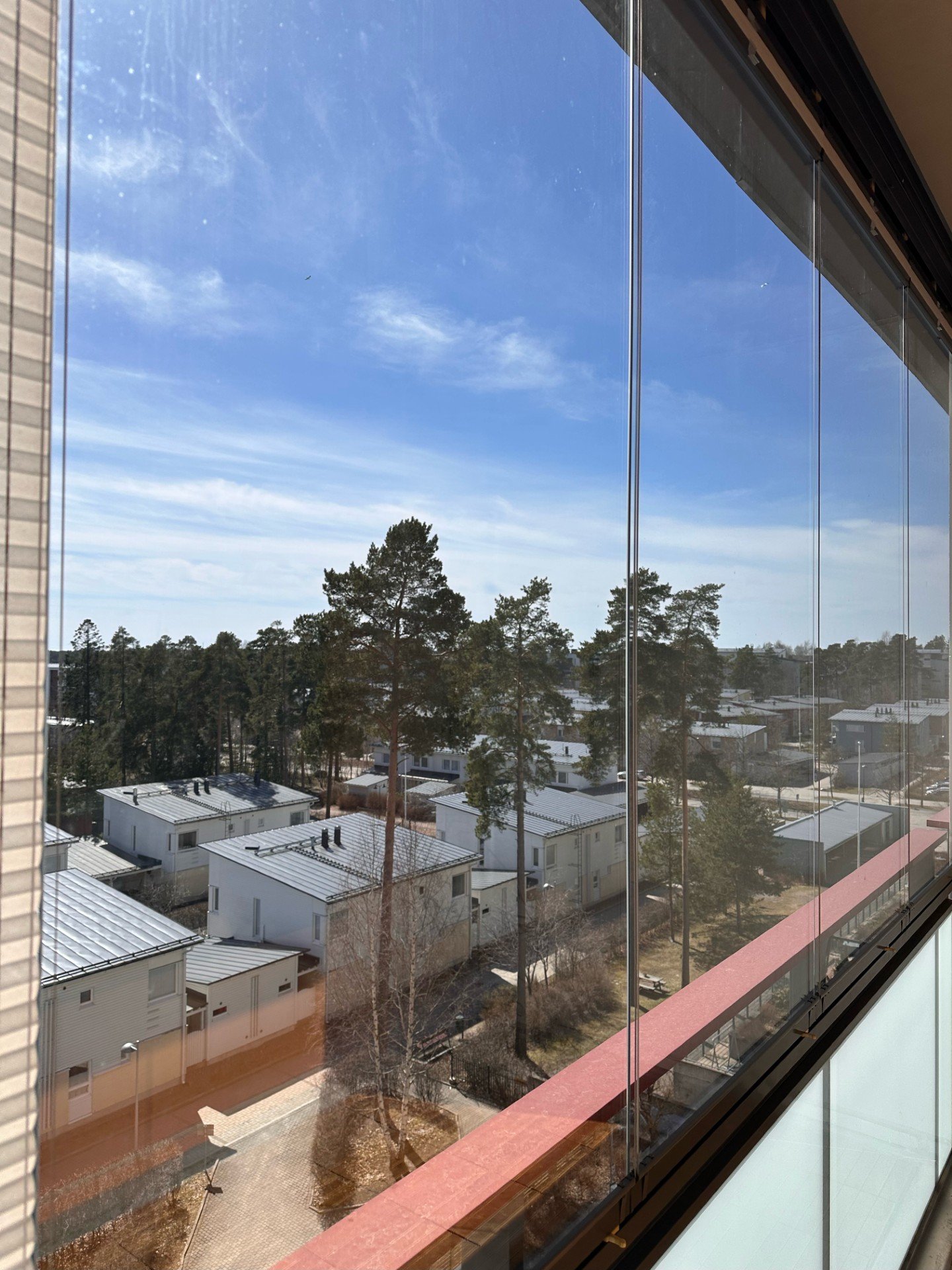 Selkeäpohjaisesta asunnosta on kauniit näkymät Aurinkolahden pientaloalueen kattojen yli etelään merelle. Asumisviihtyisyyttä tuo iso, lasitettu parveke ja oma sauna.