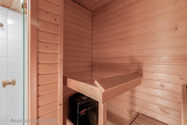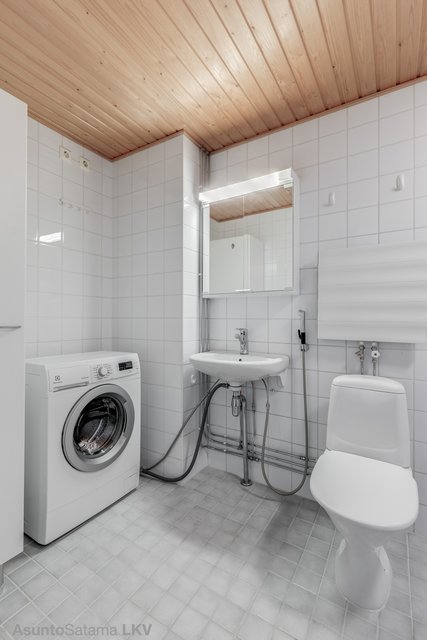 - Pesukoneliitäntä, lattialämmitys, peilikaappi, pesuallas, bidee-suihku, wc-istuin, ja suihku