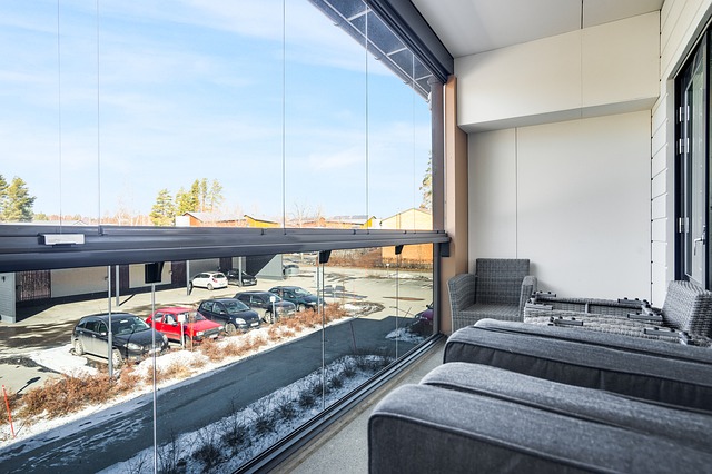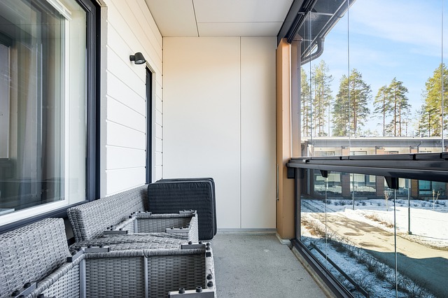 - Olohuoneesta käynti lasitetulle parvekkeelle.