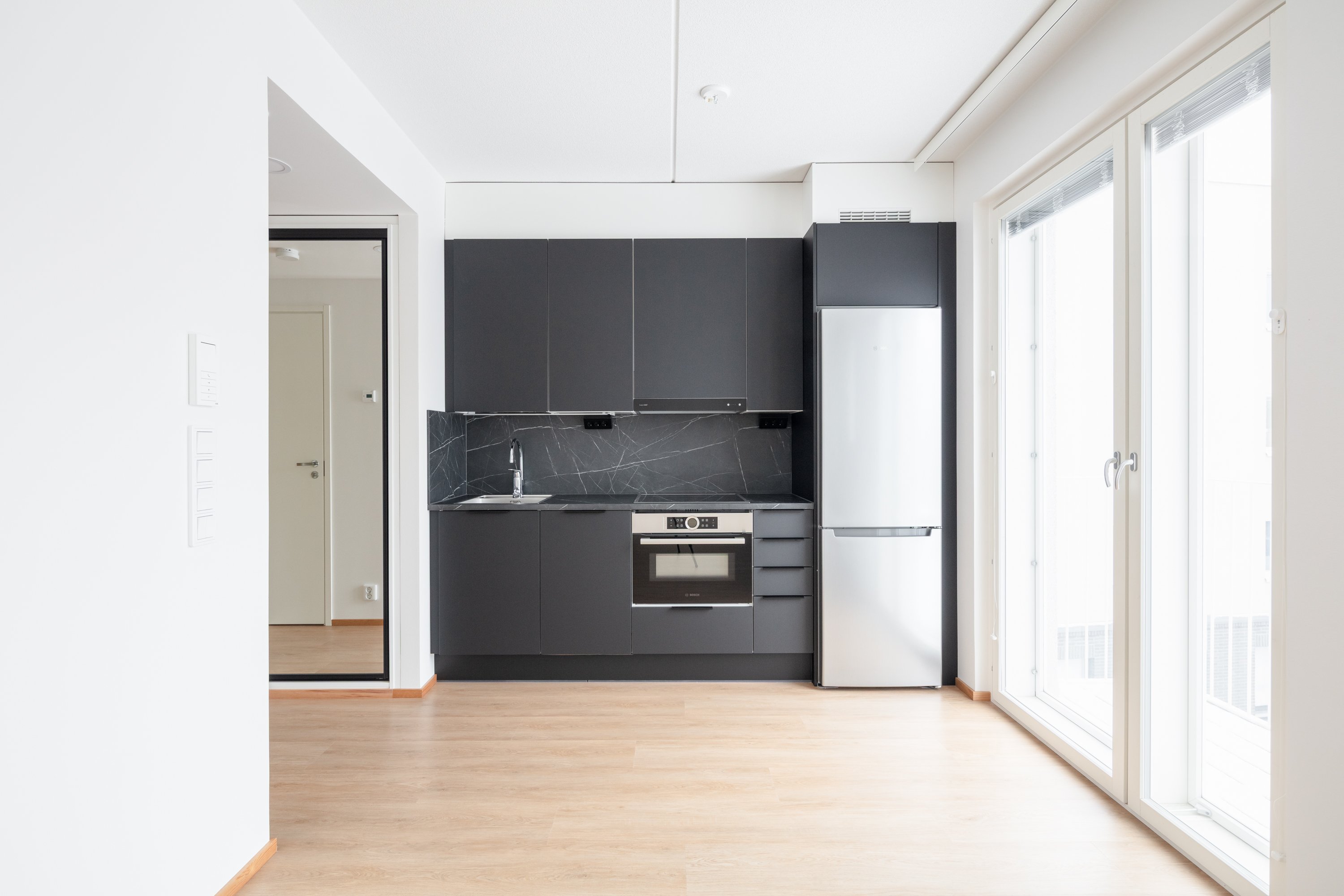 Asunnon avara pohjaratkaisu ja suuret ikkunat tuovat runsaasti luonnonvaloa sisään. Keittiö on varustettu nykyaikaisilla kodinkoneilla mikä tekee arjesta sujuvaa ja mukavaa.