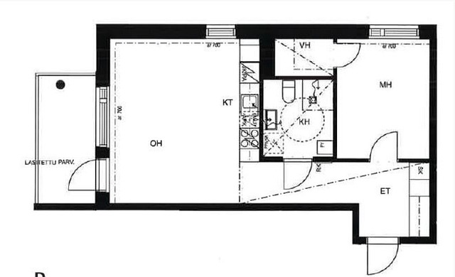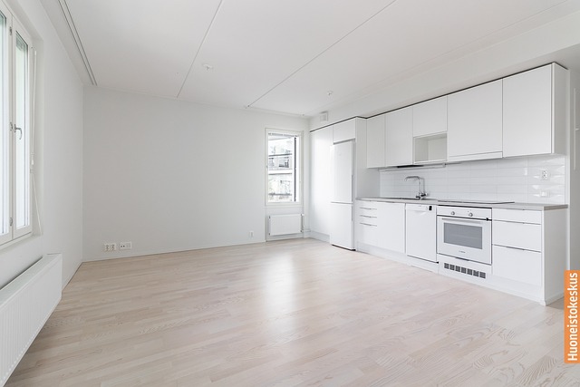 - Yhdistetty keittiö/olohuone, ikkunat kahteen ilmansuuntaan.