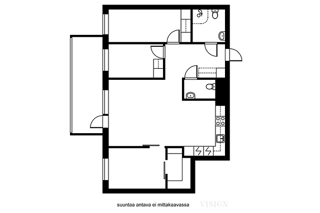 Huoneistossa on kaksi wc:tä, toinen erillisenä ja toinen kylpyhuoneessa.