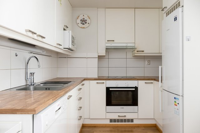 - Jääkaappipakastin, uuni, liesi, liesituuletin, ja astianpesukone