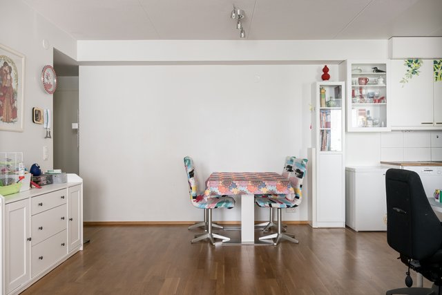 Tervetuloa tutustumaan tähän kauniiseen ja hyvin pidettyyn kotiin, jossa toimiva pohjaratkaisu, tyylikäs sisustus ja arjen mukavuudet kohtaavat. Huoneisto tarjoaa avaran olohuoneen, joka yhdistyy sulavasti ruokailutilaan ja keittiöön, luoden yhtenäisen ja valoisan kokonaisuuden.