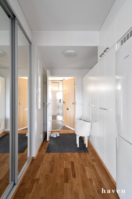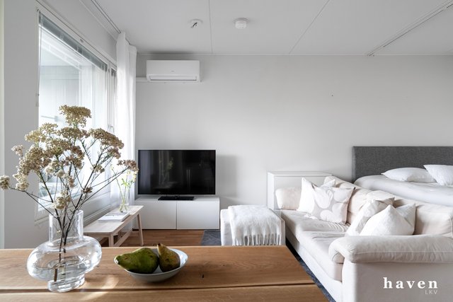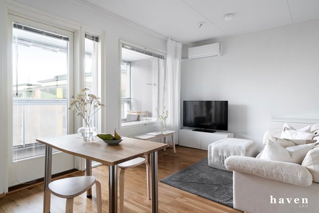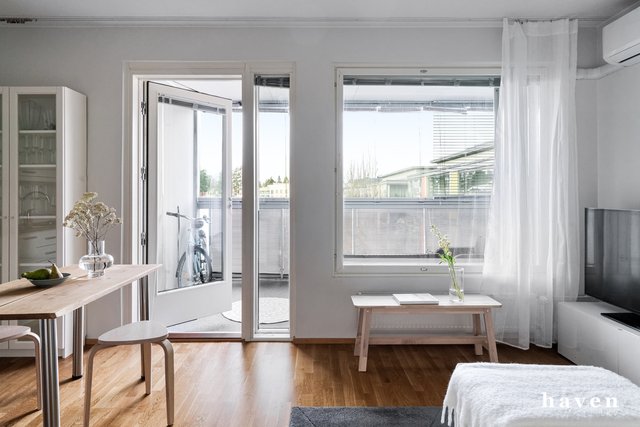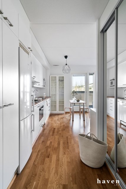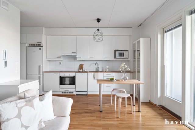 Tervetuloa tutustumaan ja ihastumaan hissitalon neljännen (4/4) kerroksen asuntoon avoimilla näkymillä. Asunnon pohjaratkaisu on erittäin toimiva ja hukkaneliöiltä on vältytty mestarillisesti. Vaalea keittiö, jossa paljon lasku- ja säilytystilaa, avoin olohuonetila, josta käynti lasitetulle parvekkeelle ilta-auringon puolelle sekä erillinen alkovi verhokiskoilla. Kylpyhuone on iso ja siellä on oma paikka pesutornille. Säilytystilaa on runsaasti niin asunnossa kuin taloyhtiönkin tiloissa.