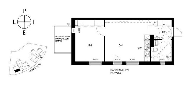 2 h, kt, kph, ranskalainen parveke