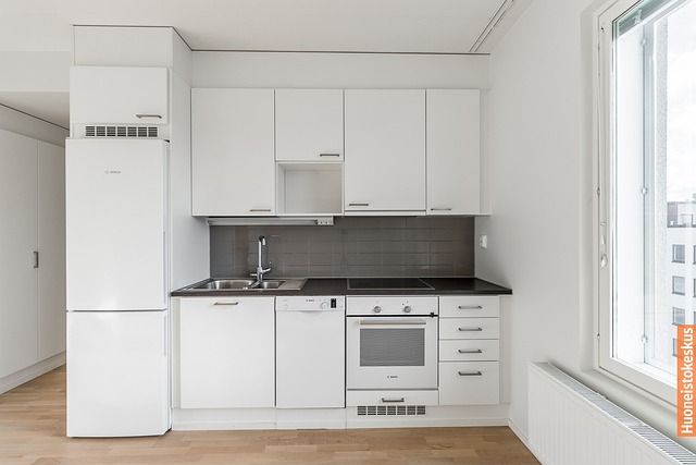 - Erillisuuni, jääkaappipakastin, liesituuletin, astianpesukone, ja liesitaso, kiinteät valaisimet
