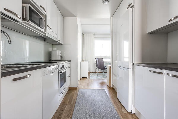 - Jääkaappipakastin, erillisuuni, astianpesukone, mikroaaltouuni, liesituuletin, ja kiinteät valaisimet