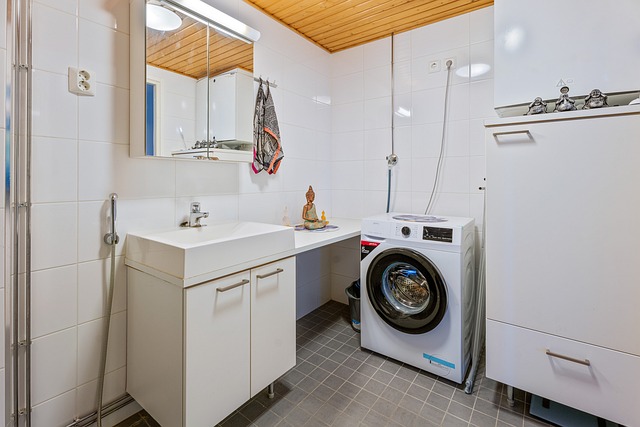 - Suihkuseinä, lattialämmitys, suihku, pesukoneliitäntä, wc-istuin, peilikaappi, ja allaskaappi