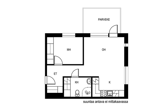 Ylimmän kerroksen (3/3) valoisa kaksio palveluiden ääreltä!