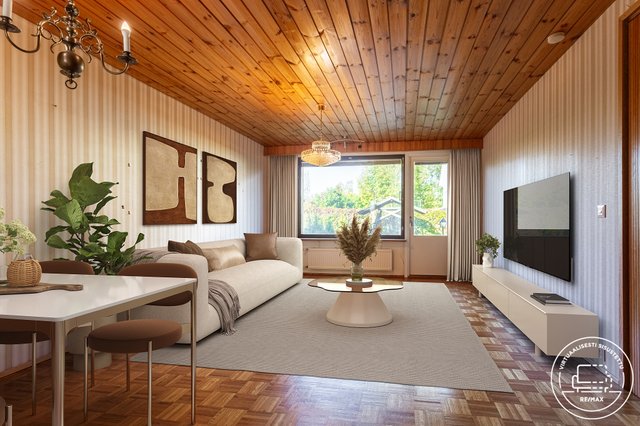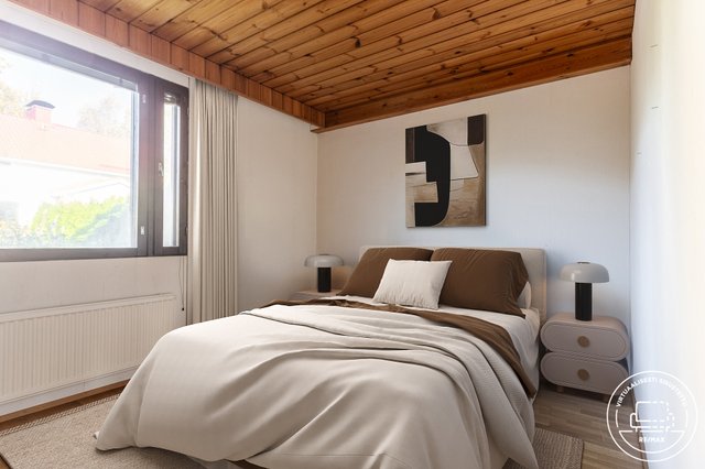 Avaraa tilaa, oma sauna ja suojaisa piha - tästä rivitalokodista löydät paljon mahdollisuuksia arjen sujuvuuteen ja viihtyisyyteen. Yksitasoinen, 90,5 m²:n kokonaisuus, tarjoaa selkeät neliöt, joiden sydämeksi asettuu valoisa olohuone takkoineen. Olohuoneesta on suora yhteys terassille ja pihalle, jossa riittää tilaa istutuksille ja oleskeluun.