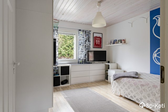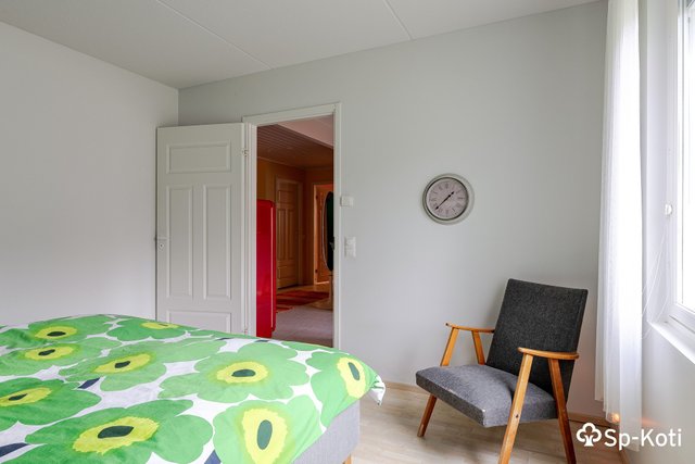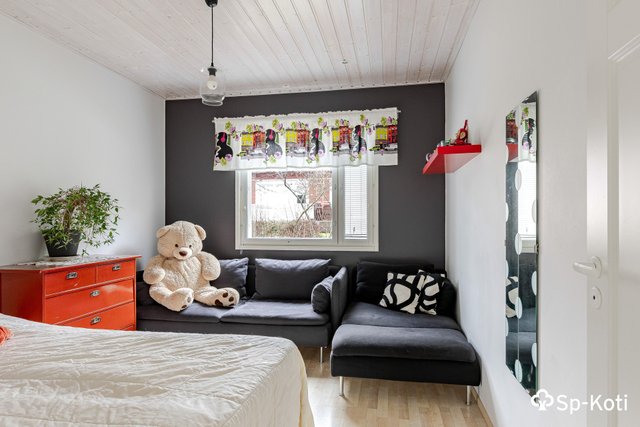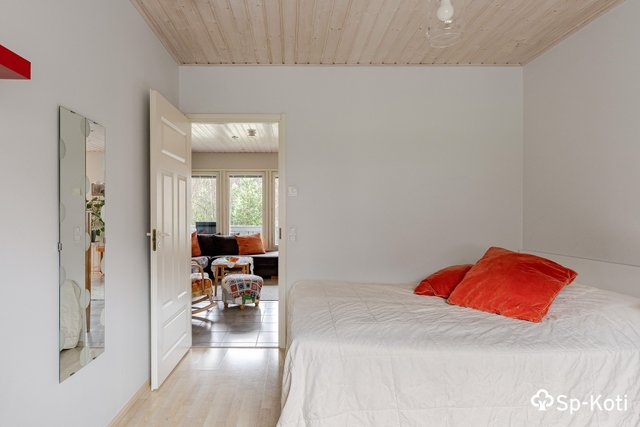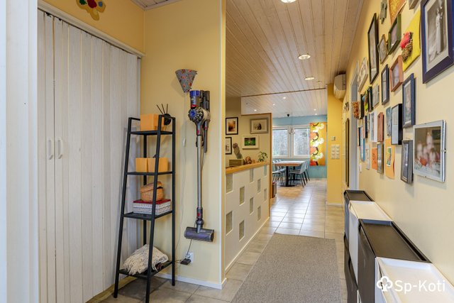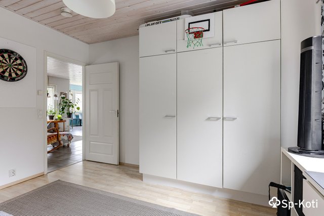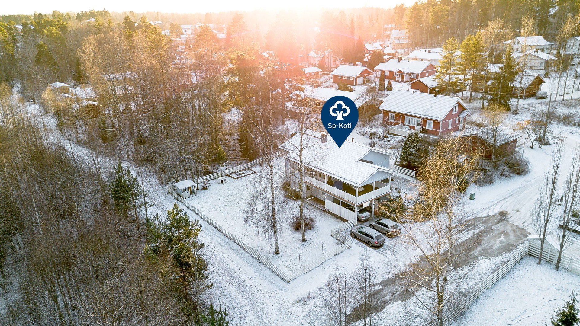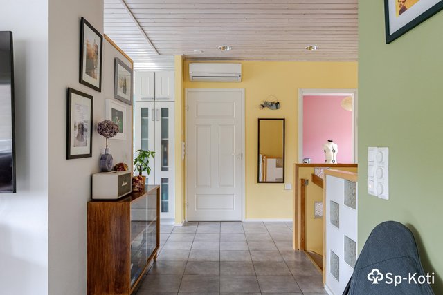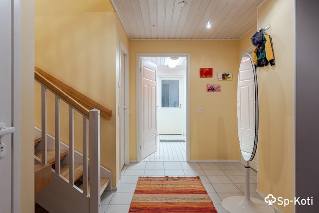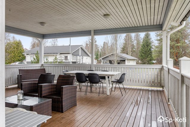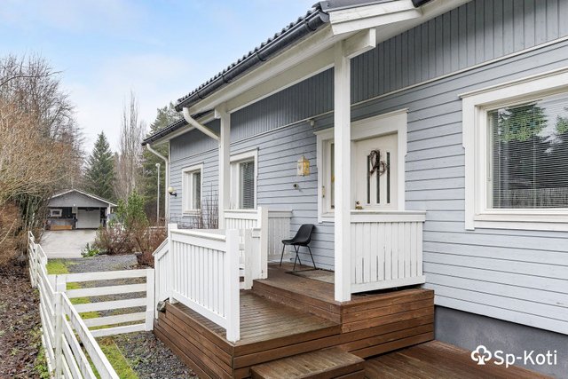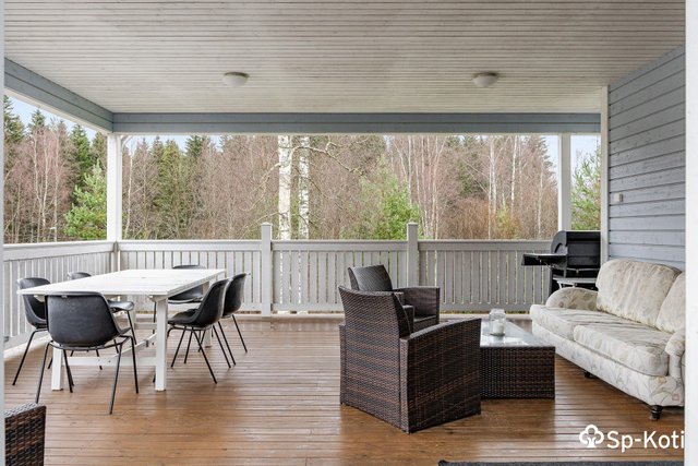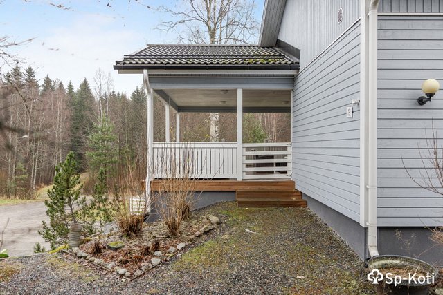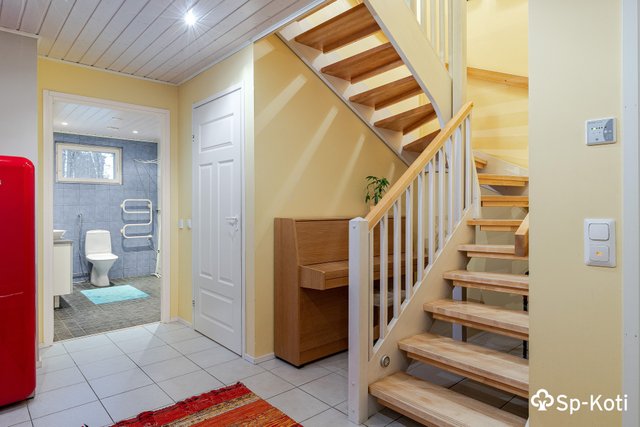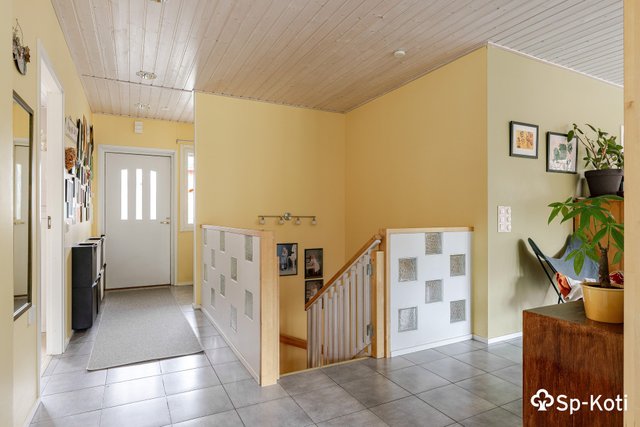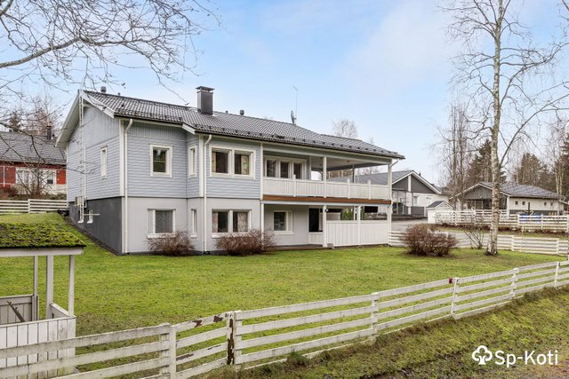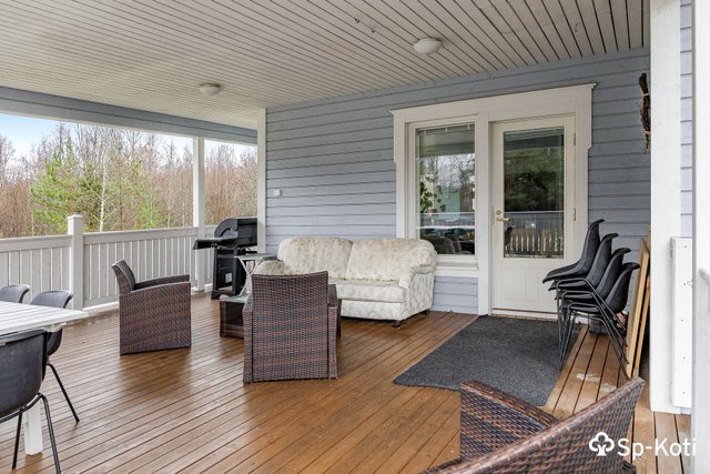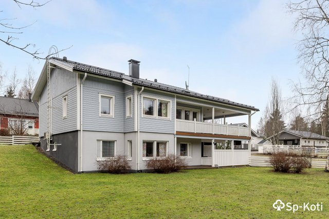 Kahdessa kerroksessa oleva talo tarjoaa runsaasti tilaa perheen arkeen ja juhlaan. Tässä kodissa on peräti viisi makuuhuonetta, joista kolme on yläkerrassa. Yläkerrassa on makuuhuoneiden lisäksi tilava eteinen, wc, vaatehuone, keittiö ja olohuone. Keittiön ja olohuoneen välissä ruokailutila, jossa taloon lämpöä sykkii leivinuuni. Oleskelutilasta on käynnit hulppealle terassille, jossa on mahtava tila oleskeluun ja vaikka juhlien järjestämiseen.