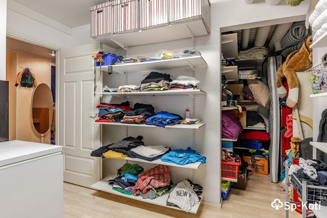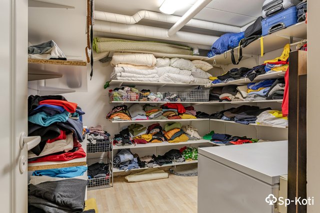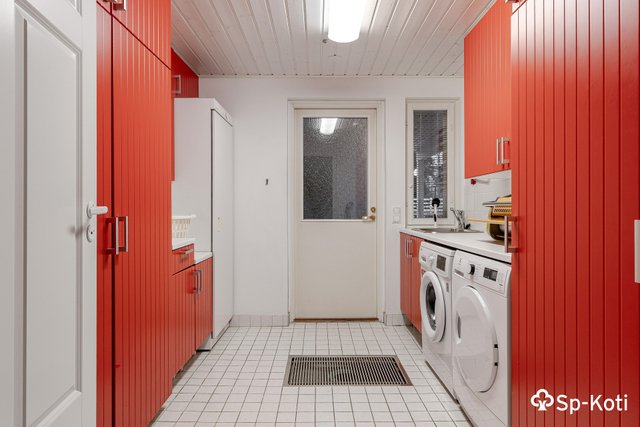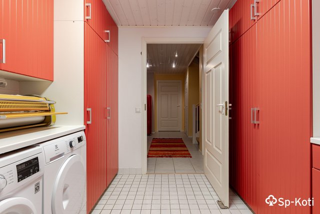 - Kurapiste, pesuallas, pesukoneliitäntä, keskuspölynimuri, ja pyykkikaapit