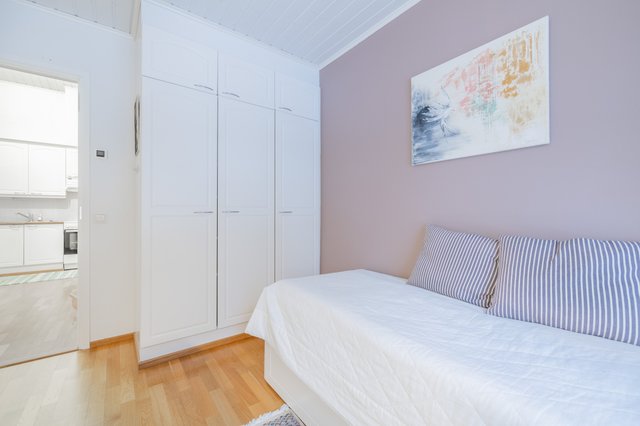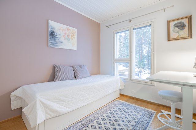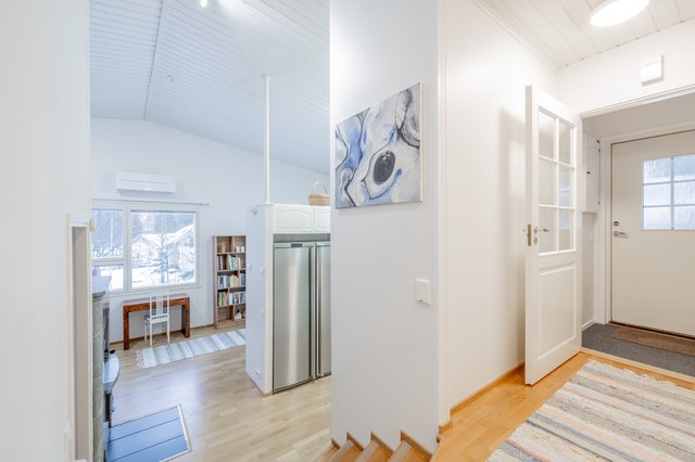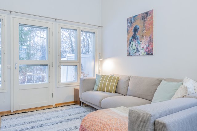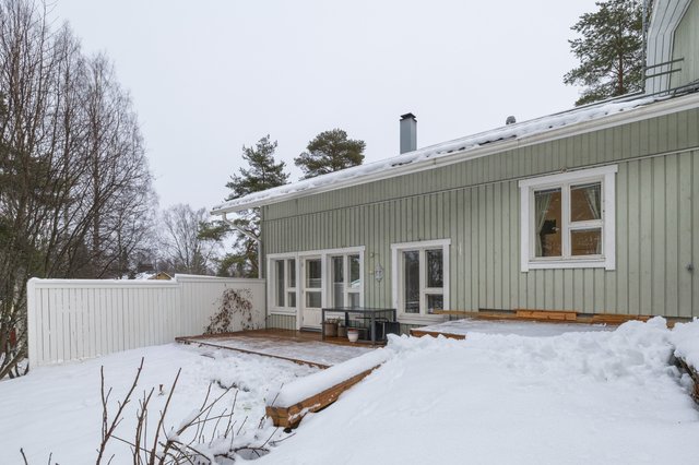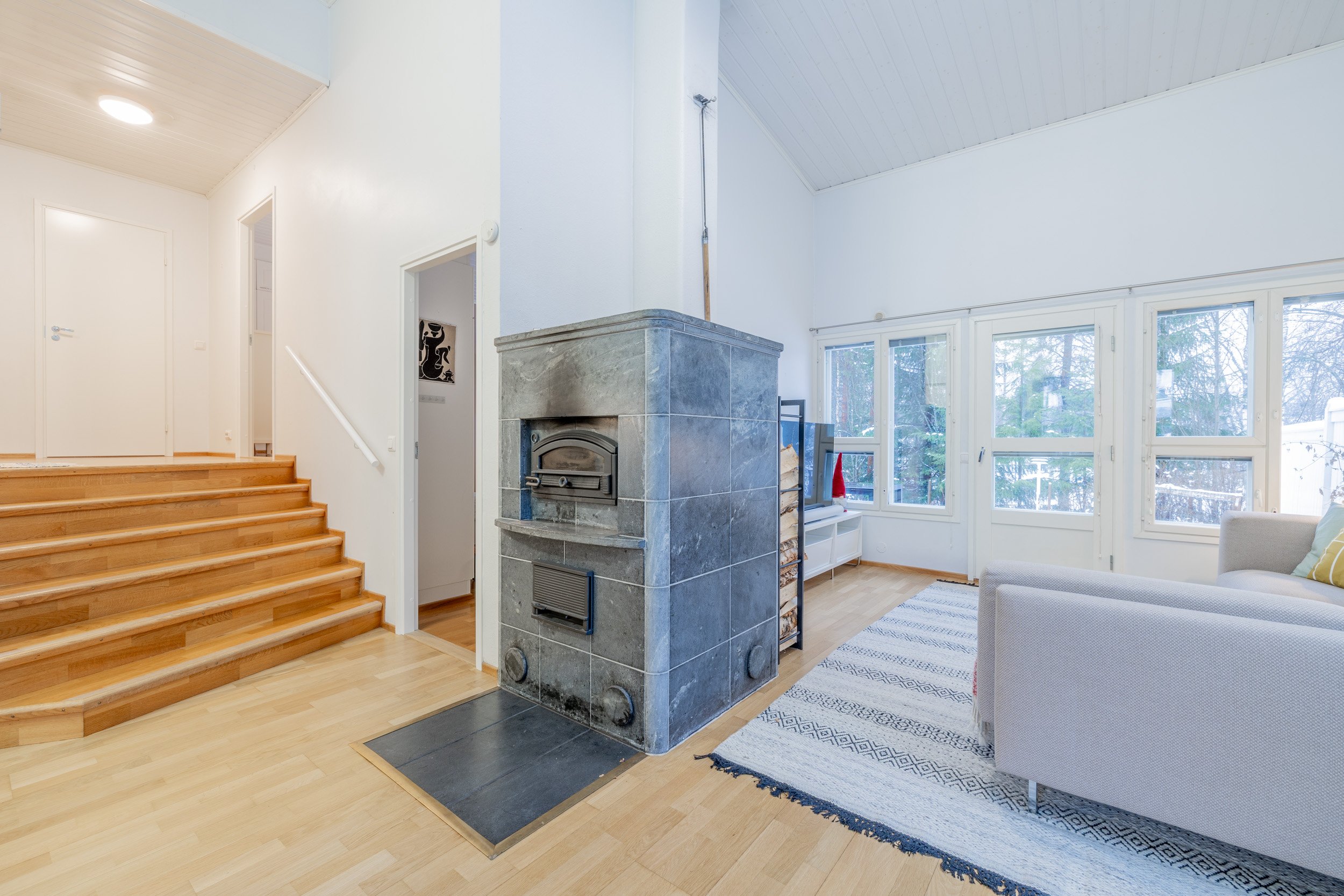 Tämä vuonna 1998 valmistunut puistoon rajoittuvalla tontilla sijaitseva koti tarjoaa erinomaiset puitteet viihtyisään asumiseen. Asunnon valoisa ja avara pohjaratkaisu sekä korkea huonetila olohuoneessa luovat tilan tuntua ja suuret ikkunat tuovat runsaasti luonnonvaloa sisään.
