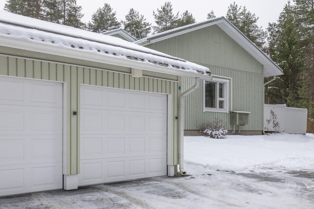 2011 autotallirakennuksen räystäiden ja otsalautojen huoltomaalaus, lumiesteiden