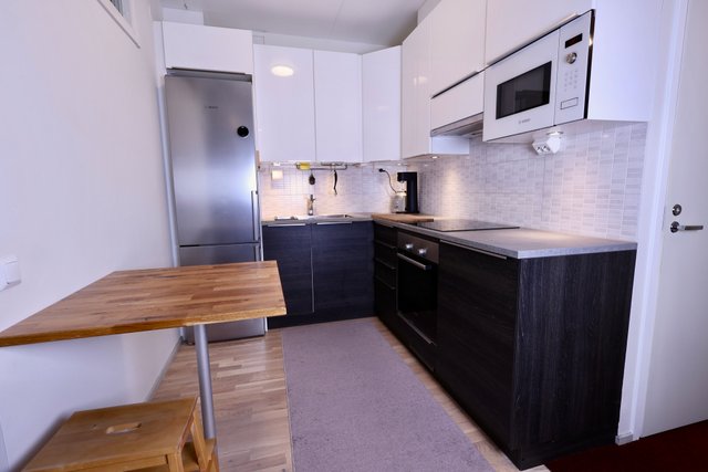 - Jääkaappi, astianpesukone, uuni, liesi, liesituuletin, jääkaappipakastin, ja mikroaaltouuni