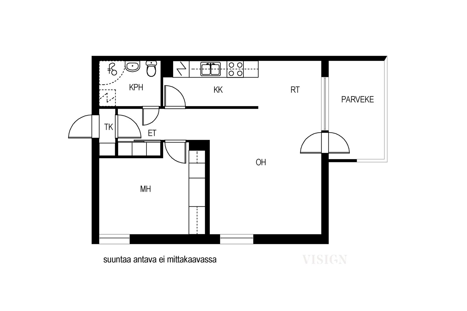 2 h, k, kph, lasitettu parveke (yj. 2h+kk)