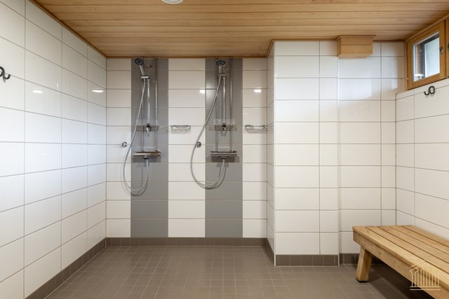 - WC-istuin, suihku, pesuallas, allaskaappi, bidee-suihku, lattialämmitys, peilikaappi, suihkuseinä, pesukoneliitäntä, ja pyyhekuivain