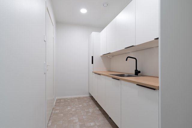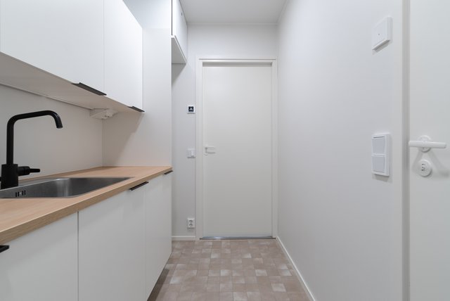 - Pesukoneliitäntä, lattialämmitys, pöytätaso, pesuallas, lattiakaivo, ja lastenhoitopöytä/taso