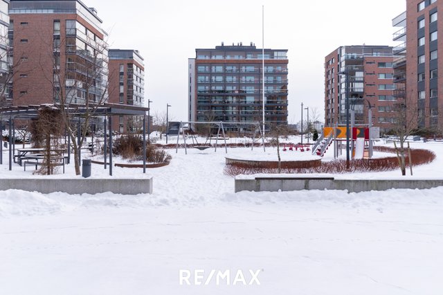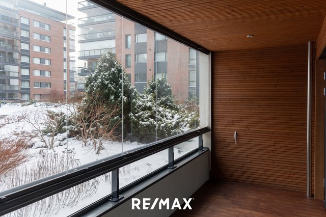 Asunnon keittiö on varustettu laadukkailla kodinkoneilla ja kivitasoilla. Parveke on lasitettu ja suuntautuu kaakkoon, tarjoten mukavan paikan nauttia aamukahvista.