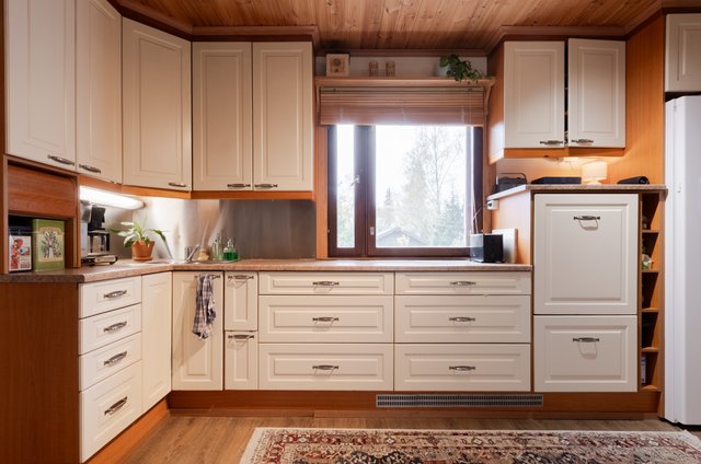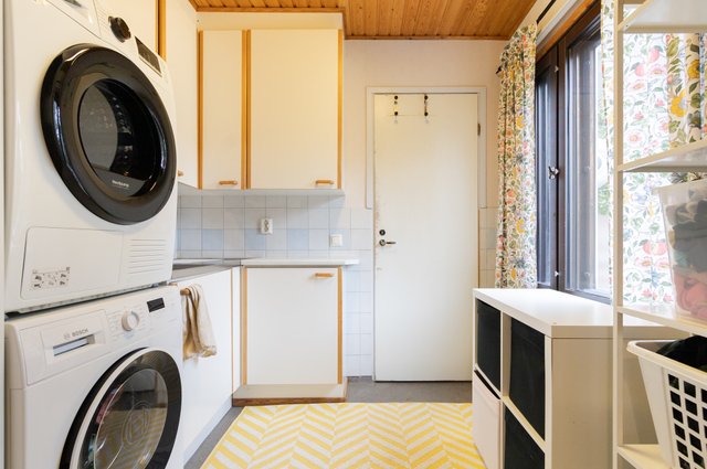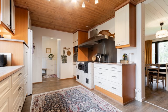 - Jääkaappi, liesi, liesituuletin, astianpesukone, puuhella, erillisuuni, ja erillinen pakastin