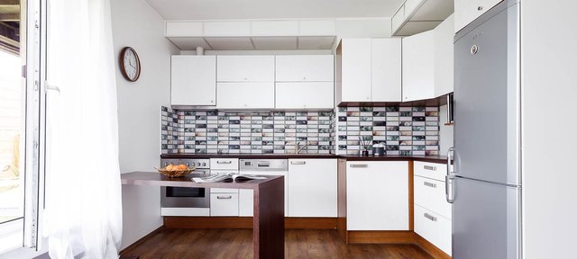 - Jääkaappipakastin, uuni, liesi, liesituuletin, astianpesukone, ja keittiösaareke