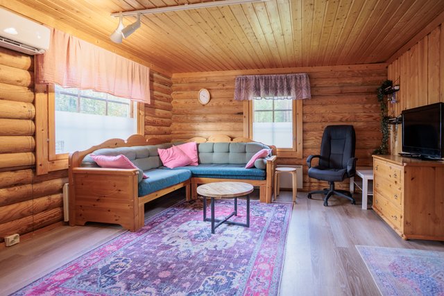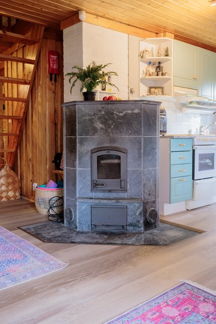 - Mökin tupa on mukavan avaraa tilaa ja se yhdistyy saumattomasti keittiöön. Tilaa yhteiseen oleskeluun on tarjolla mukavasti. Kaunis tulisija sijaitsee keskeisellä paikalla tuvassa tunnelman tuojana sekä tietysti lisälämmön lähteenä talven paukkupakkasilla.