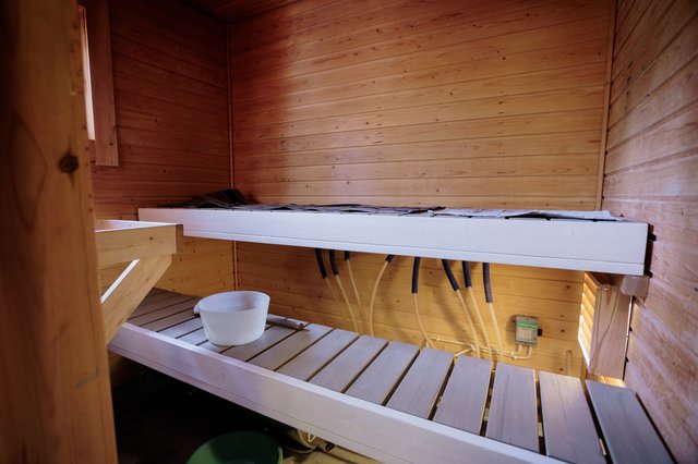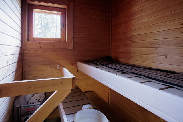 - Sauna sijaitsee pesutilojen yhteydessä ja on varsin siistissä kuosissa. Ikkuna tarjoilee lisävaloa saunaan. Saunan löylyistä vastaa sähköinen kiuas.