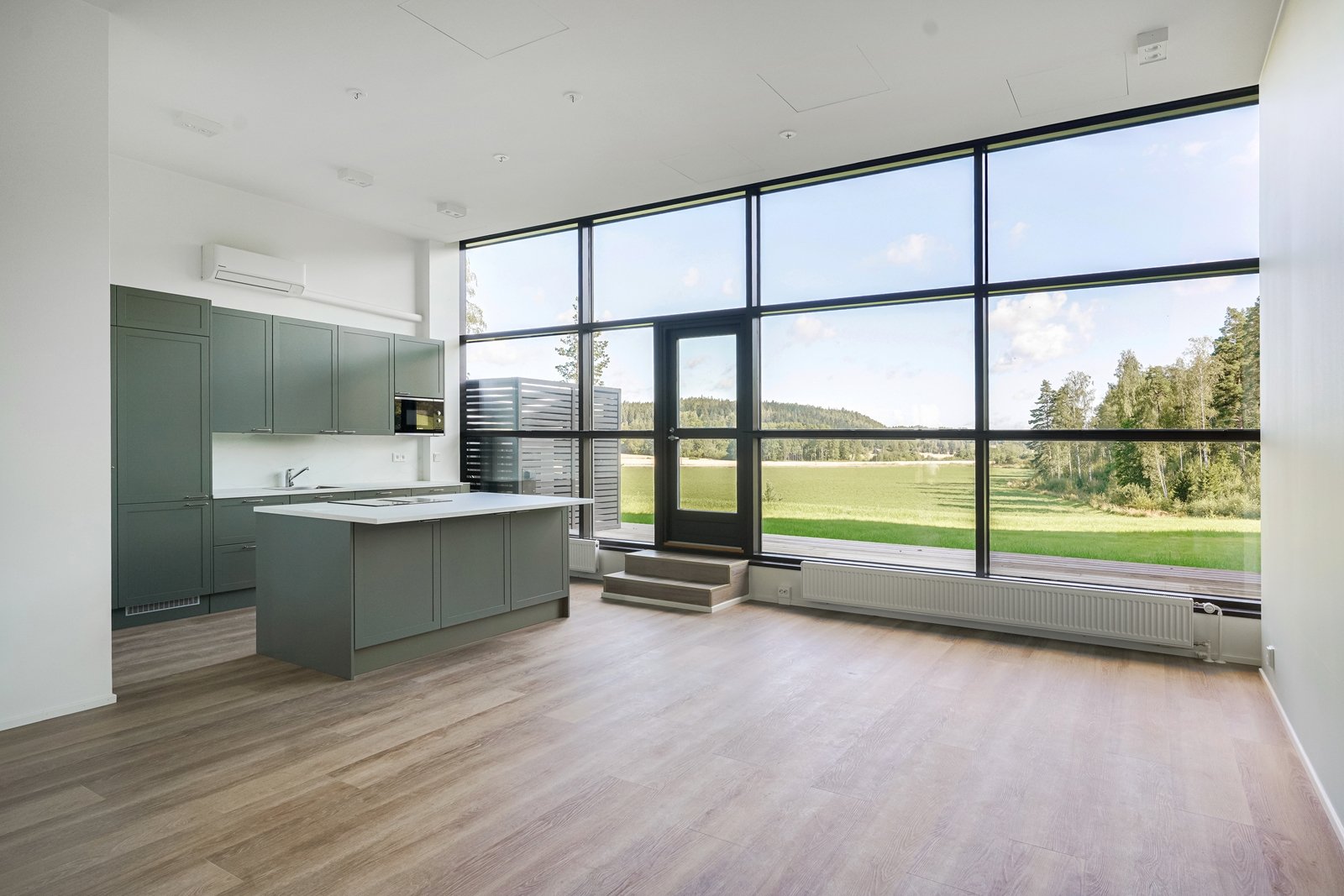 Tule tutustumaan vastavalmistuneisiin loft asuntoihin ja ihastu niiden avaraan ja valoisaan tunnelmaan! Huikeat panoraaman kaltaiset näkymät ympäröivään luontoon kruunaavat ylellisen kokonaisuuden. Hienostuneet värivalinnat, erityisen suuri huonekorkeus sekä lasiseininä nousevat ikkunat luovat ainutlaatuisen tunnelman.