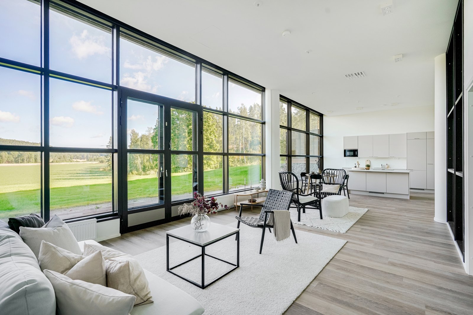 Tule tutustumaan vastavalmistuneisiin loft asuntoihin ja ihastu niiden avaraan ja valoisaan tunnelmaan! Huikeat panoraaman kaltaiset näkymät ympäröivään luontoon kruunaavat ylellisen kokonaisuuden. Hienostuneet värivalinnat, erityisen suuri huonekorkeus sekä lasiseininä nousevat ikkunat luovat ainutlaatuisen tunnelman.